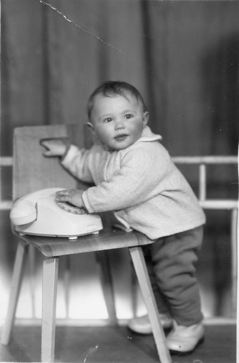 Один год и три месяца. На снимке розовощёкий бутуз вцепился в диск телефона. Матушка рассказывала: привела в фотографию, а там этот телефон. Я как его увидел, так забыл про все на свете. Фотограф и так меня звал, и эдак, чтобы на камеру обернулся Всё без толку. Только когда матушка несколько раз пальцами щёлкнула, я обернулся на знакомый звук, хохотнул и тут же опять в телефон уткнулся. Фотограф момент чуток прозевал и на снимке осталась лишь тень улыбки.