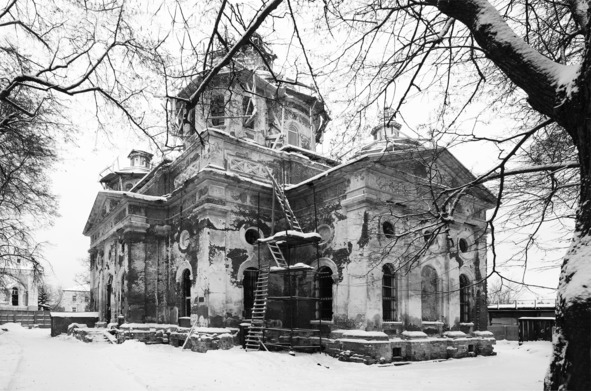 Берлюковский монастырь все еще в руинах. Служба проходит в подвале храма Христа Спасителя. Вход с левого торца