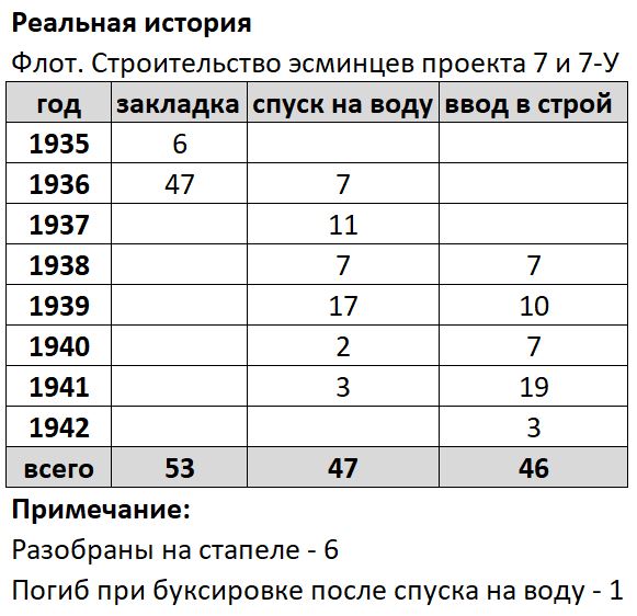 ТТХ эсминцев проекта 7 не отличаются от их ТТХ в нашей реальности.