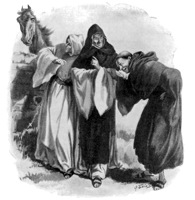 Когда он спрыгнул на землю, монахи столпились вокруг него, благодаря и восхищаясь. Но он угрюмо повернулся и молча ушел бы, если бы аббат его не остановил.