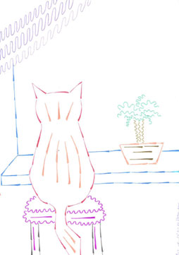Понятна идея конфликта горизонтальных и вертикальных полос, а также выбор радужного спектра как многообразия контактов, но «тяжелые» цвета (фиолетовый, синий, красный) носят пастельный оттенок, и разделительная полоса настолько аморфна, что трагедии, собственно говоря, не получилось. Свойственна ли вообще «неконтактность» пациенту?