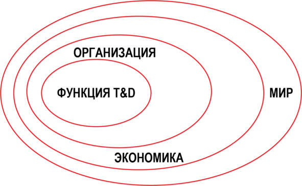 Функция T&D является элементом организации, а та, в свою очередь, частью экономической системы, существующей в «окружающем мире», который можно рассматривать с самых разных сторон: геополитики, антропологии, экологии и т. д. Попробуем рассмотреть функцию T&D в современной организации с высоты, так сказать, «птичьего полета». Разберемся сначала, в каком же мире существует эта самая организация.