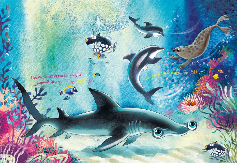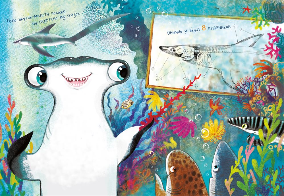 Я гигантская акула-молот, одна из самых крупных акул. Длина моего тела больше трёх метров! Правда, некоторые мои сёстры раза в два крупнее. Да-да, именно сёстры, мальчики у нас обычно немного мельче. Среди молотов есть и малышки ростом примерно с вас, человеков. Но они относятся к другим видам.