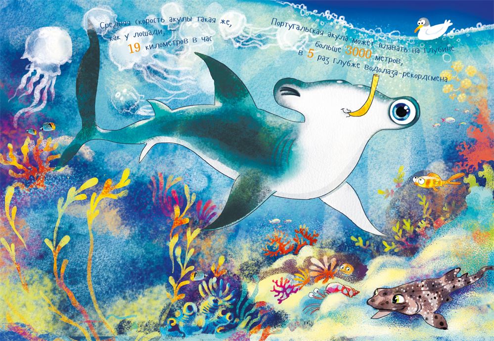 Приветствую вас, люди! Разрешите представиться акула (правда, не обычная). Имя выразительное и всем знакомое. Недаром у вас говорят: «акулы бизнеса», «акулы пера» и сразу ясно, что речь идёт о людях быстрых, хватких, зубастых. Оно и понятно: у настоящей акулы во рту всегда полным-полно острых зубов!