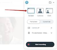 5. Нажмите на него или на вкладку Новое видео Экран записи и появится окно с выбором вариантов записи: