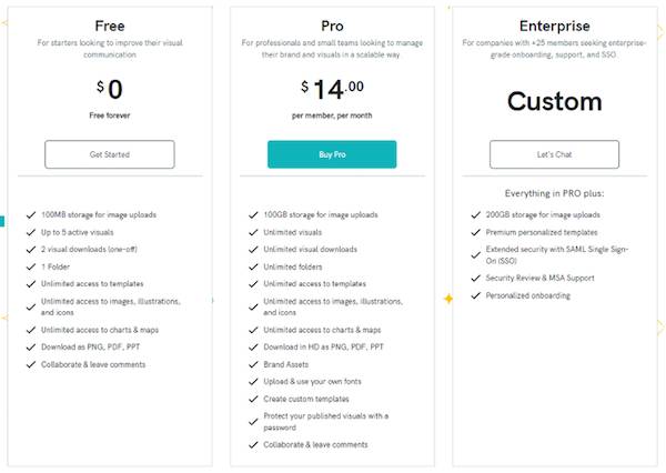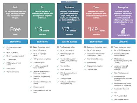 На бесплатном тарифе ограниченное количество шаблонов, картинок и шрифтов, а также ваша инфографика доступна для просмотра всем.