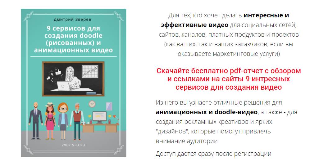 Так, у меня есть отчет, к примеру, с обзором сервисов для создания анимационных и рисованных видео, подписавшись на который люди попадают в базу.