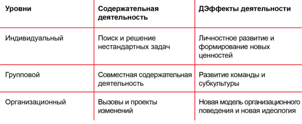 Чтобы в полной мере реализовать обучение в деятельности, нам необходимо, с одной стороны, создать ситуацию деятельности (не работы). С другой стороны, нужно адаптировать существующие методы T&D под содержание структуры деятельности и дополнительно придумать новые методы и механики.