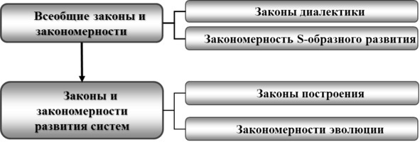 Всеобщие это универсальные законы, справедливые для любой системы независимо от ее природы, вследствие единства материального мира. Самые общие из них законы диалектики и закономерность S-образного развития;
