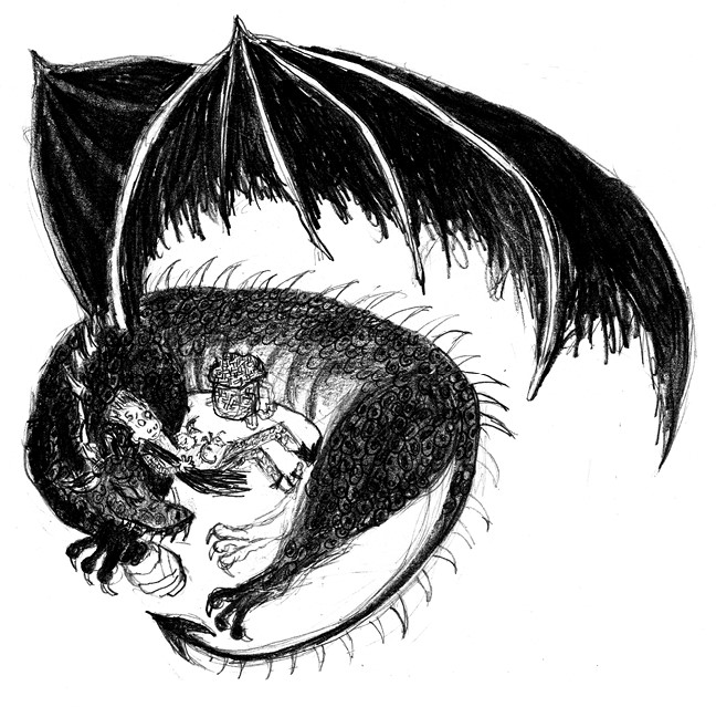 Замаскированный Смертень медленно принял свой естественный цвет. Великолепное создание словно соткалось из воздуха. Теперь он предстал во всей красе: лоснящееся, мускулистое, как у пантеры, тело, пугающе убедительные когти и пасть, способная выдыхать и молнии, и пламя.
