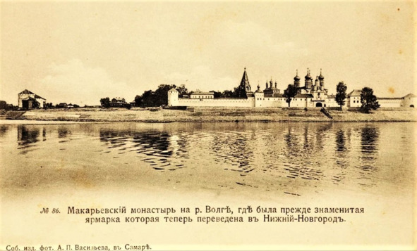 Макарьев уездный город (до 1920 года), центр Макарьевского уезда Нижегородской губернии1. Он располагается на левом берегу Волги, ниже устья речки Керженец. Поселение сложилось вокруг Макарьевского Желтоводского монастыря (фото 1). С 1641 по 1816 год здесь проводилась известная Макарьевская ярмарка, переведенная после пожара в Нижний Новгород. Среди местных промыслов наибольшую славу приобрел сундучный.