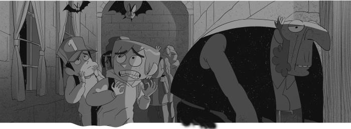 Колдовать: манипулировать чем-либо или кем-либо с помощью магических практик. Согласно словарю, вещь может быть околдована или населена призраками, если её обрабатывали магическим способом. Я не знаю, была ли магия в замке Маклауд, не могу сказать точно. Но на первый взгляд у него были все признаки замка с привидениями. Если бы кто-нибудь спросил меня: «Как выглядит замок с привидениями?», я без раздумий ответил бы: «В точности как замок Маклауд». Внутри было множество тёмных туннелей, тускло освещённых факелами. Через окна, очень длинные и узкие, проникал лунный свет. Время от времени раздавался звук хлопающих крыльев, а когда мы поворачивали головы, то видели удаляющуюся стаю летучих мышей. Порядок в замке явно не наводили давно. Где-то вдалеке послышались вздохи и смех. Мы шли по бесконечному коридору вслед за Игорем, который двигался очень быстро и, как всегда, сгорбившись. Нам было трудно угнаться за ним.