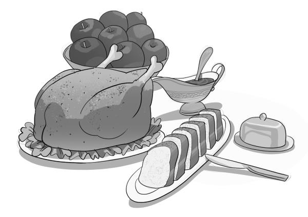 На длинных деревянных столах были расставлены закуски и напитки. Там было много всего: большие тарелки с мясом, хлеб с маслом и джемом, салаты, фрукты разных видов и цветные напитки, названий которых я не знаю. Зал был гигантским, с огромными железными светильниками, в которые были вставлены сотни факелов.