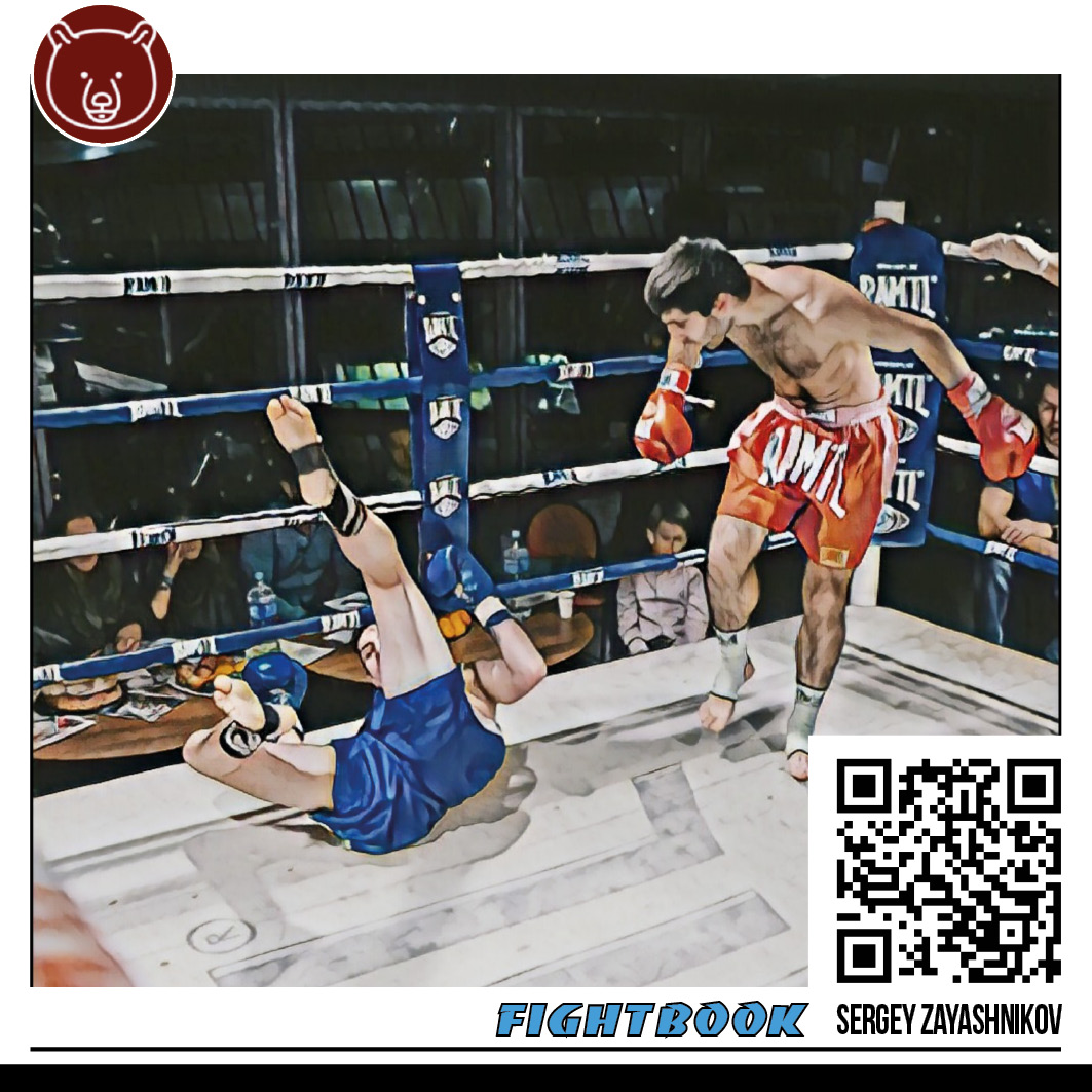 Тайбоксер подхватывает снизу возвращающуюся после толчка ногу соперника.