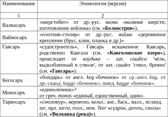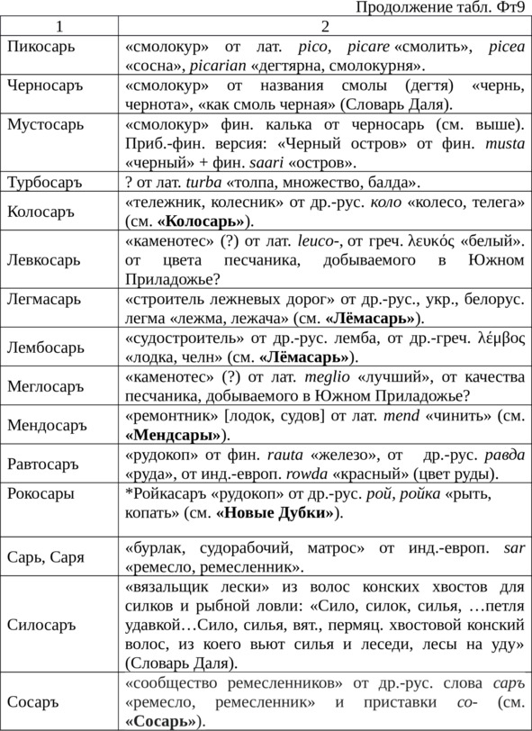 Таблица Фт9Этимология топонимов с формантом -саръ/-сарь