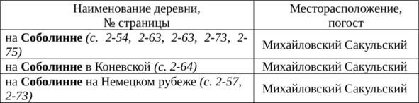 Таблица Б1Топоним Соболинна по «Переписной книге Водской пятины 1500 года»
