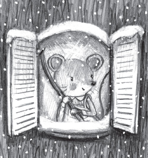 Снег кружил и медленно падал вокруг отеля «Хартвуд». Это был сонный снег тот, которому требуется довольно много времени, чтобы опуститься на землю. Мышка Мона смотрела на него в маленькое окошко бального зала, навалившись на ручку метлы из одуванчика. Было так тихо, что она почти могла услышать, как снежинки касаются земли.