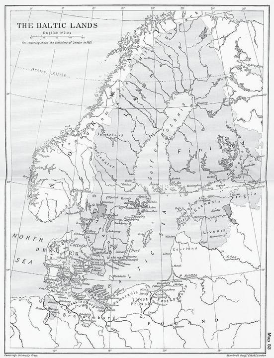Балтика в 1661 г., во времена господства Швеции в этом регионе. Хотя Финский залив пока никак не назван, на его восточной оконечности уже обозначен Санкт-Петербург, которого фактически не существовало еще чуть более четырех десятилетий