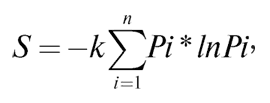 где S общая энтропия состояния системы, константа k = = 1,38*10-23 Дж/К, названная Планком постоянной Больцмана, а Ω статистический вес состояния, являющийся числом возможных равновероятных микросостояний (способов), с помощью которых можно составить данное макроскопическое состояние. Более ранняя формулировка Джозайя Гиббса (1878 г.) для микросостояний, имеющих разную вероятность, устанавливает зависимость в виде суммы произведения вероятности состояний на натуральные логарифмы этих же вероятностей, взятой с противоположным знаком: