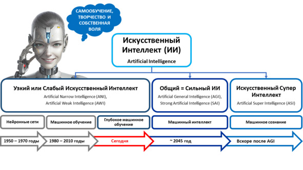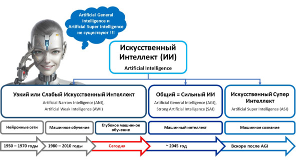 Искусственный сверхинтеллект (Artificial Super Intelligence, ASI) это термин, который обозначает наивысшую степень развития искусственного интеллекта, превосходящую человеческие возможности во всех аспектах его жизнедеятельности392. На сегодняшний день систем искусственного сверхинтеллекта также, как и систем сильного или общего искусственного интеллекта не существует. Многие ученые считают, что до создания супер интеллекта пройдет очень много времени, но большинство из них все же сходятся во мнении, что это рано или поздно произойдет.