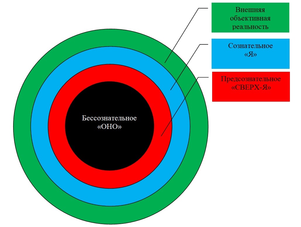 Согласно психоаналитическому учению, наша психика состоит из трех взаимосвязанных инстанций: бессознательного «Оно», сознательного «Я» и предсознательного «СВЕРХ-Я».