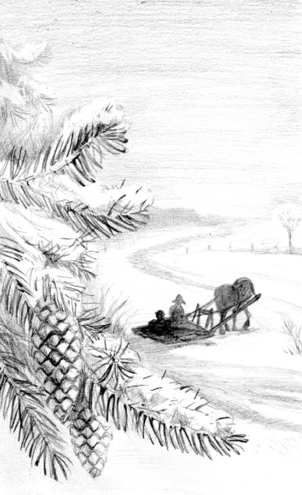 Олауның урта бер өлешендә туры ат җигелгән чыбылдыклы чана бара. Ул чана артына тагын бер затлы чана тагылган. Аңа төенчекләр, тулы капчыклар, әрҗәләр төяп бәйләнгән, аларны кар сарган. Башына колакчыны бәйләнгән бүрек, кулына тире бияләй кигән, якасы һәм җиңе камалы төлке туны өстеннән толып бөркәнгән, сакалы-мыегы бәсләнеп каткан, дилбегә тоткан Сафиулла казанчы Алты-биш Сапый, козгынны карашы белән озатып калганнан соң: