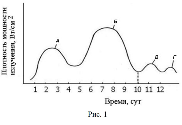 В патенте RU 2108028 авторов Котова Б.С и Гавинского Ю. В. (1996), приведены результаты измерений биологического излучения ростков различных растений в диапазоне длин волн от 2 мкм до 2 мм (Рис. 1). По одной оси указана плотность мощности излучения (Вт/см