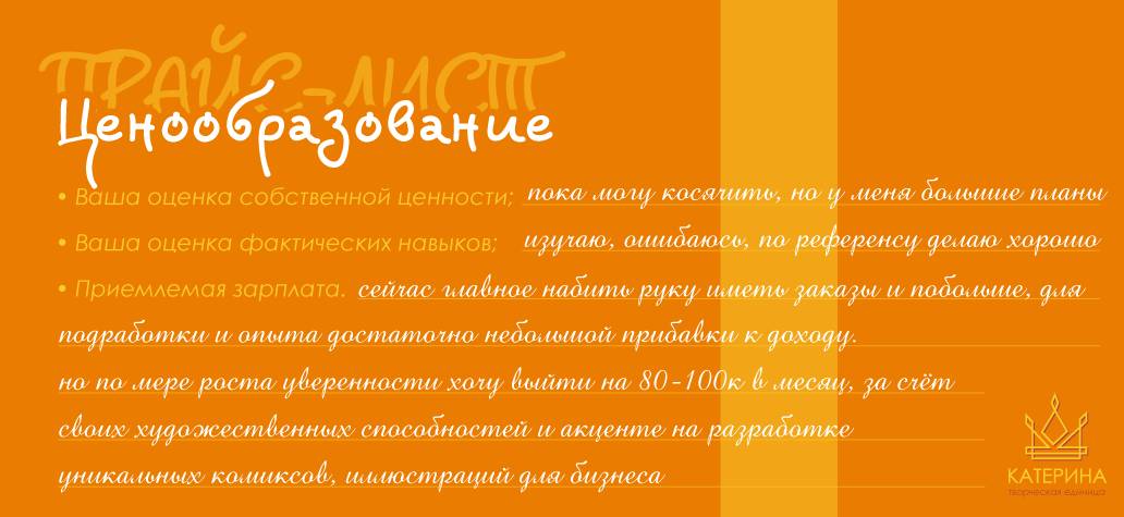 Вы можете жить в Сызрани, поставить цель зарабатывать не меньше 30 000 рублей и вполне здорово себе жить. Расписать норму по желаемому количеству клиентов, примерную цену на каждую позицию и тестировать разные варианты. Отслеживать внутренний комфорт, приходящих клиентов и качество коммуникации между вами. По ходу приобретения опыта редактировать свои представления о стоимости того или иного макета.