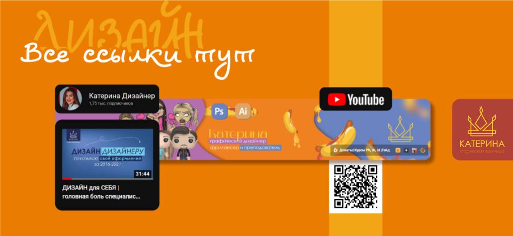И я осознаю, что это далеко не конец поисков. Прошёл уже год или даже более, а я уже начинаю частично менять детали, докручивать их до субъективного идеала. Можно заметить это по разности шрифтов (коим написано «Катерина») на обложке YouTube и шрифта для заголовка в этом сборнике «Все ссылки тут». Пока в живых осталась общая концепция, основной шрифт и цвета. Для меня это говорит о движении и развитии. Меняемся мы меняется всё вокруг. И это прекрасно.