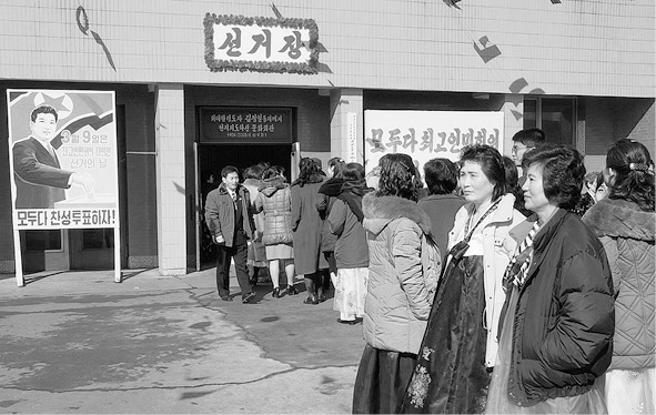 Следует в два раза бдительнее относиться к странам, в названии которых фигурирует религия или идеология. Государство, представляющееся миру как «исламская республика», «народная республика», «демократическая республика» и тому подобное, вряд ли является оплотом свободомыслия. Корейская Народно-Демократическая Республика в этом, как и во всем остальном, решила, что хорошего много не бывает, и надела все лучшее сразу. Между прочим, немногие в курсе, что страна действительно не ленится регулярно проводить выборы почти как настоящие! Верховное народное собрание состоит примерно из 700 депутатов по одному от каждого избирательного округа и избирается раз в пять лет путем всеобщего голосования, в котором каждый округ голосует за одного выдвинутого кандидата. Чтобы уберечь население от мук выбора, власти заранее решают, какой именно кандидат будет выдвинут. Подавляющее большинство этих кандидатов всегда более 600 из правящей Трудовой партии Кореи (ТПК). Другими словами, партия всегда может сформировать правительство. Остальные представители относятся к одной из двух других марионеточных партий, существующих в первую очередь для того, чтобы оправдать слово «демократическая» в названии страны.