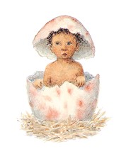 И вот однажды змея принесла ей крупное, даже крупнее яйца черепахи, яйцо с необычными пятнами на скорлупе. Женщина положила это яйцо в глиняный горшок и помолилась. Три недели прошло и она услышала, как яйцо хрустнуло и кто-то заплакал. Крошечный младенец! Радость, которую испытала женщина, трудно описать словами. Она нянчилась с мальчуганом, качала его на руках, кормила, купала словом, делала всё, что обычно делает для ребёнка заботливая мать.