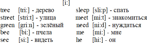 е [i:] произносить как в русских словах: ива, пиво;
