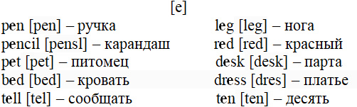 4. Прочитайте слова с буквой e в закрытом и открытом слоге: