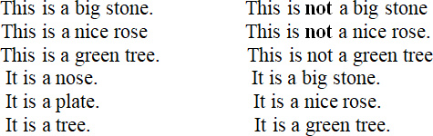 No, green, tube, big, ill, thin, three, five, six, nine, these, those, he, me, is, take, sit, it, stone, lip, that, box, put.