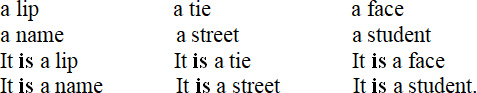 5. Прочитайте слова и предложения. Читайте слитно, понижая голос в конце фразы. Обратите внимание на употребление глагола связки is в третьем лице единственного числа.