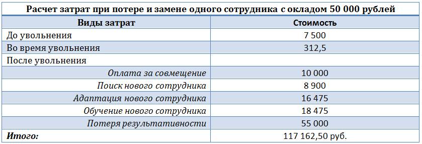 3. Прямые затраты в связи с заменой одного менеджера = 117 162,50 (расчет представлен в таблице ниже);