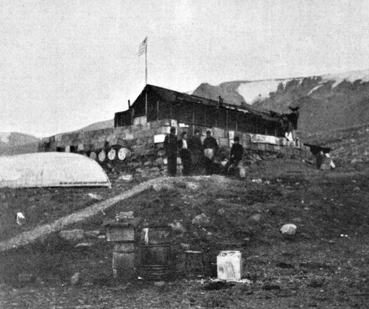 Спустя 10 дней члены отряда уже обживали построенный дом 22 на 12 футов: одну комнату размером 20 на 7,5 футов заняли пять членов команды, в другой, почти в два раза меньшей, разместилась семья Пири.