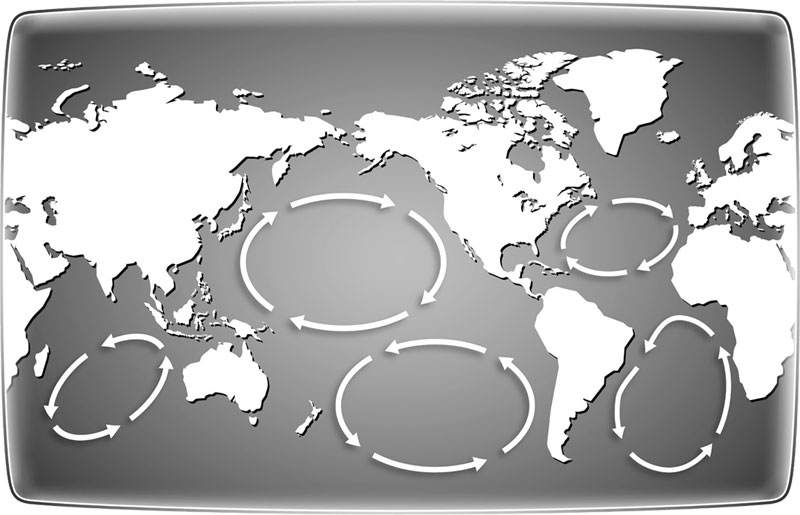 В центрах основных круговоротов Мирового океана скапливается дрейфующий мусор, поступающий с континентов. На акватории в 1,6 млн км