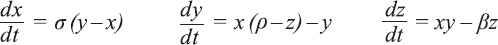 В качестве примера Лоренц рассмотрел (Lorenz, 1963) систему дифференциальных уравнений, упрощенно описывающих конвекцию в атмосфере: