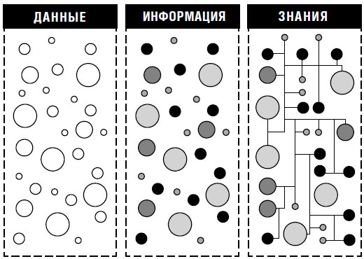 Последний вопрос имеет принципиальное значение, и я хочу, чтобы вы над ним задумались. Потому что ответ на него требует понимания различия между знаниями и информацией. Я заостряю на этом внимание, потому что вижу, как часто даже профессиональное сообщество, по долгу службы обязанное различать эти термины, считает их синонимами. Вы тоже можете себя проверить, попытавшись четко описать разницу между этими понятиями. Если у вас это получилось, то вы, скорее всего, пришли к примерно следующим формулировкам. Информация это факты в определенном контексте, а знания это способность добиться предсказуемого результата с помощью информации. Поэтому ключевое отличие человека, обладающего информацией, от человека, обладающего знаниями, в том, что первый может только распространять ее, а второй добиваться результата.