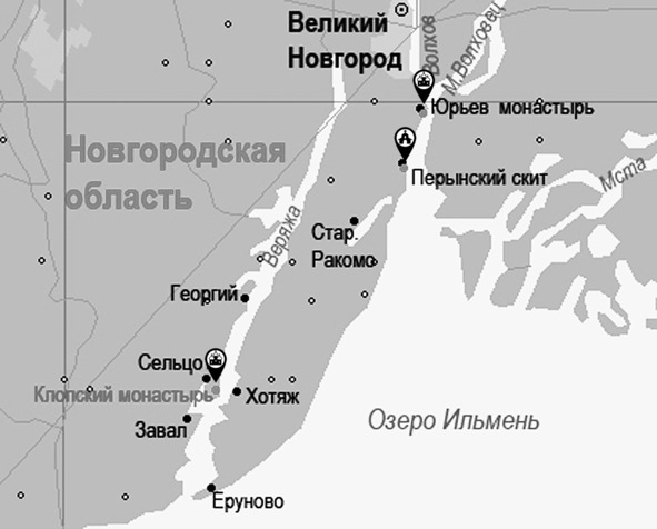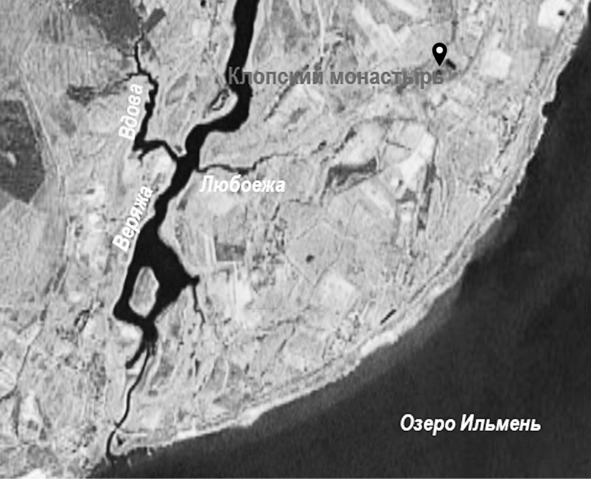 В Ильмень-озеро течет множество рек, у каждой своя повадка, но, пожалуй, забавнее всех ведет себя Веряжа. Она течет навстречу Волхову, вытекающему из Ильменя, далее вдоль горловины Ильменя параллельно озерному берегу и, наконец, когда Ильмень перекрывает Веряже дорогу, впадает в него как бы от безысходности. По берегам Веряжи есть места силы. Одно из них называется Клоп. Туземцы мне объяснили, что это потому, что в половодье, когда Веряжа, ее приток речка Вдова и впадающий во Вдову безымянный ручей, выходят из берегов, образуется остров, по форме напоминающий клопа. На острове стоит Клопский монастырь. Когда он здесь появился, никто не знает. Писаная же его история началась в ночь на Ивана Купалу 1408 года.