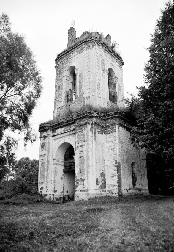 Разрушенная колокольня Клопского монастыря. Здесь некогда был вход в монастырь, обращенный к реке, устраивались крестные ходы по Веряже. Сейчас монастырь понемногу восстанавливается
