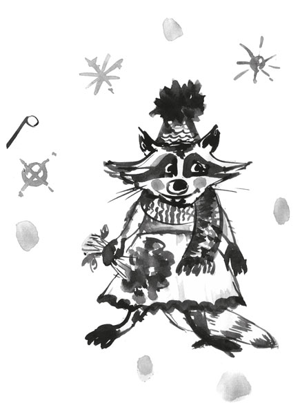 На следующий день был выходной. Брат и сестра с утра хорошенько помыли уши енотным мылом, подстригли коготки и выбрали в шкафах свои самые лучшие наряды: Тоня розовое платье с рюшами, белые туфли и банты, а Моня голубую рубашку и чёрный костюмчик.