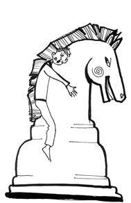 Есть три вещи, на которые можно смотреть вечно: как течёт вода, как горит огонь и как мой сын играет в шахматы. И не потому, что это так сильно меня завораживает, а потому, что этот процесс в нашем доме бесконечен. Шахматы за столом, шахматы под столом, шахматы в машине, шахматы на кровати, шахматы под кроватью, шахматы вместо кровати. Отчаянный папин вопль «я сел на слона», как вы поняли, не означает, что папа в Индии и катается на слоне, а всего лишь знак того, что кто-то играл на кровати в шахматы и не до конца их убрал, в связи с чем папа будет какое-то время только лежать или стоять.