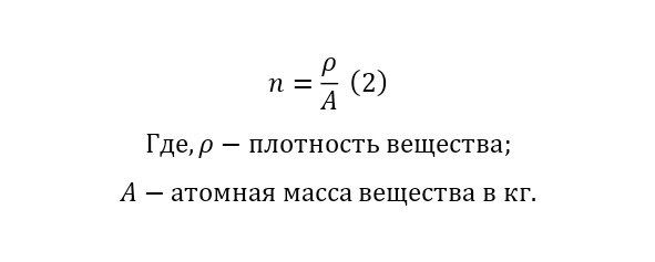Определим количество ядер в этом отрезке двух координат x и x+dx, если толщина между ними dx. Для этого введём значение плотности ядер, которое определяет количество ядер вещества в единице объёма, она определяется как отношение плотности вещества на его атомную массу в кг и изменяется в ядро/м