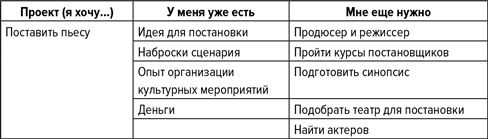Итак, запишите в первый столбец, что бы вы хотели начать.