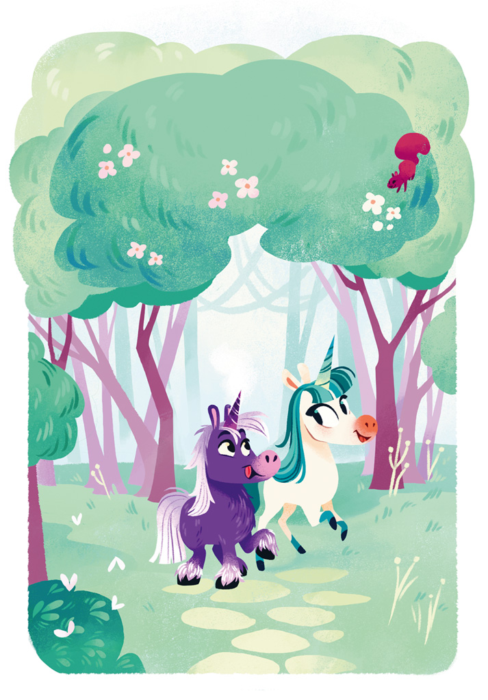 Искрик и Ивушка поскакали прямо к саду Гейба. По пути они видели, как играют и резвятся на лугах другие единороги, их сверстники. Но они так спешили, что даже не остановились поздороваться.