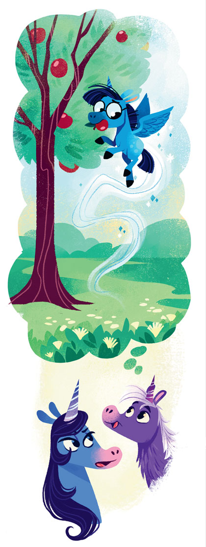 «Гейбу точно понравится летать», подумал маленький единорог. А его, Искрика, он угостит лучшими яблоками. Так что оба окажутся в выигрыше!