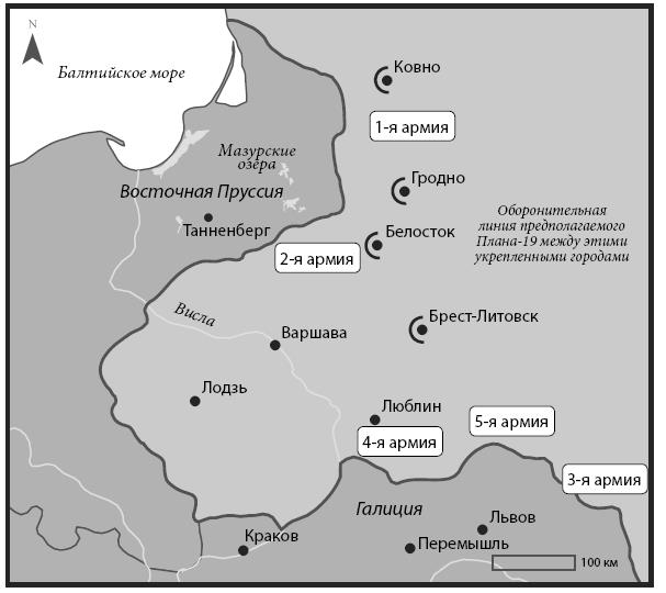 Это был опасный момент для немцев. На бумаге две русские армии состояли из 30 дивизий, которые могли быть брошены против 13 дивизий 8-й армии генерала Максимилиана фон Притвица. Окружение 8-й армии вызвало бы серьезный кризис, поскольку большая часть оставшихся вооруженных сил Германии была срочно направлена к Парижу, а дорога на Берлин была относительно свободна. Притвиц, опасаясь худшего, предложил отступить обратно на западный берег Вислы, примерно за 250 километров. В сущности, Притвиц предлагал спасти Германию, пожертвовав Восточной Пруссией. Землевладельческая элита Германии много вложила в финансовом и эмоциональном смысле в Восточную Пруссию, и это во многом стало причиной шока, охватившего Берлин, когда стали известны приказы Притвица. Но следует также отметить, что отступление могло бы иметь разрушительные и незамедлительные военные последствия и для австро-венгерских сил в Галиции[29]. Русские продвигались в Галиции гораздо медленнее и менее эффективно, чем могли бы, по большей части из-за постоянного давления немцев на севере.