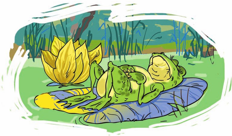 Не успел кузнечик прийти в себя от обидной новости, как к нему примчался лягушонок. Лягушонок был чуточку хитрее простодушного кузнечика и решил того обмануть: